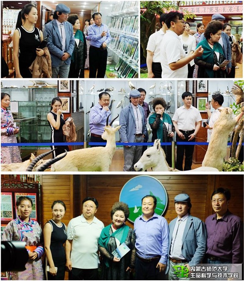 在“吉祥三宝”走进内师大校园活动期间,著名蒙古族歌唱家布仁巴雅尔,乌日娜夫妇和他们的侄女英格玛一行在学校宣传部张宝成部长和威尼斯官网恩和书记等的陪同下饶有兴致的参观了生物标本馆,哈斯巴根院长、格日乐图馆长和学生解说员对到访的客人介绍了标本馆概况和馆藏标本,布仁巴雅尔夫妇对标本馆的各类标本赞叹不已,给予了很高的评价。