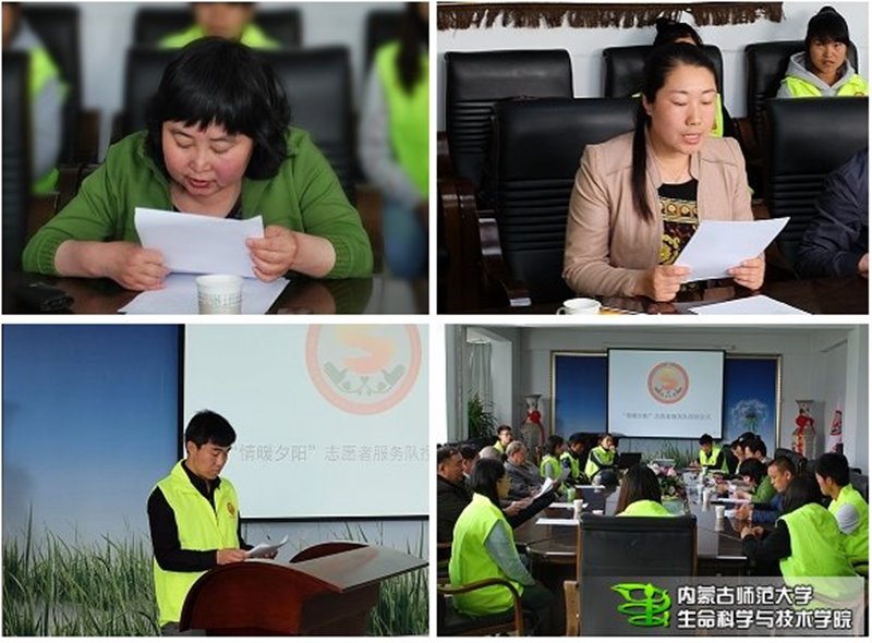 为了弘扬中华民族尊老爱幼的优良传统,体现对离退休老教师的敬仰和关怀,威尼斯官网于5月15日上午在学院会议室举行了88038威尼斯“情暖夕阳”志愿者服务队授旗仪式,宣告“情暖夕阳”志愿者服务队正式成立。离退休教职工工作处党总支书记官布苏荣、处长李文胜、校团委书记斯钦、退休教师代表音扎布教授、张功教授、学院党总支书记恩和、副书记莎日娜出席,威尼斯官网团学组织负责人达来、张艳英和“情暖夕阳”志愿者服务队全体队员参加了授旗仪式,会议由威尼斯官网党总支书记恩和老师支持。