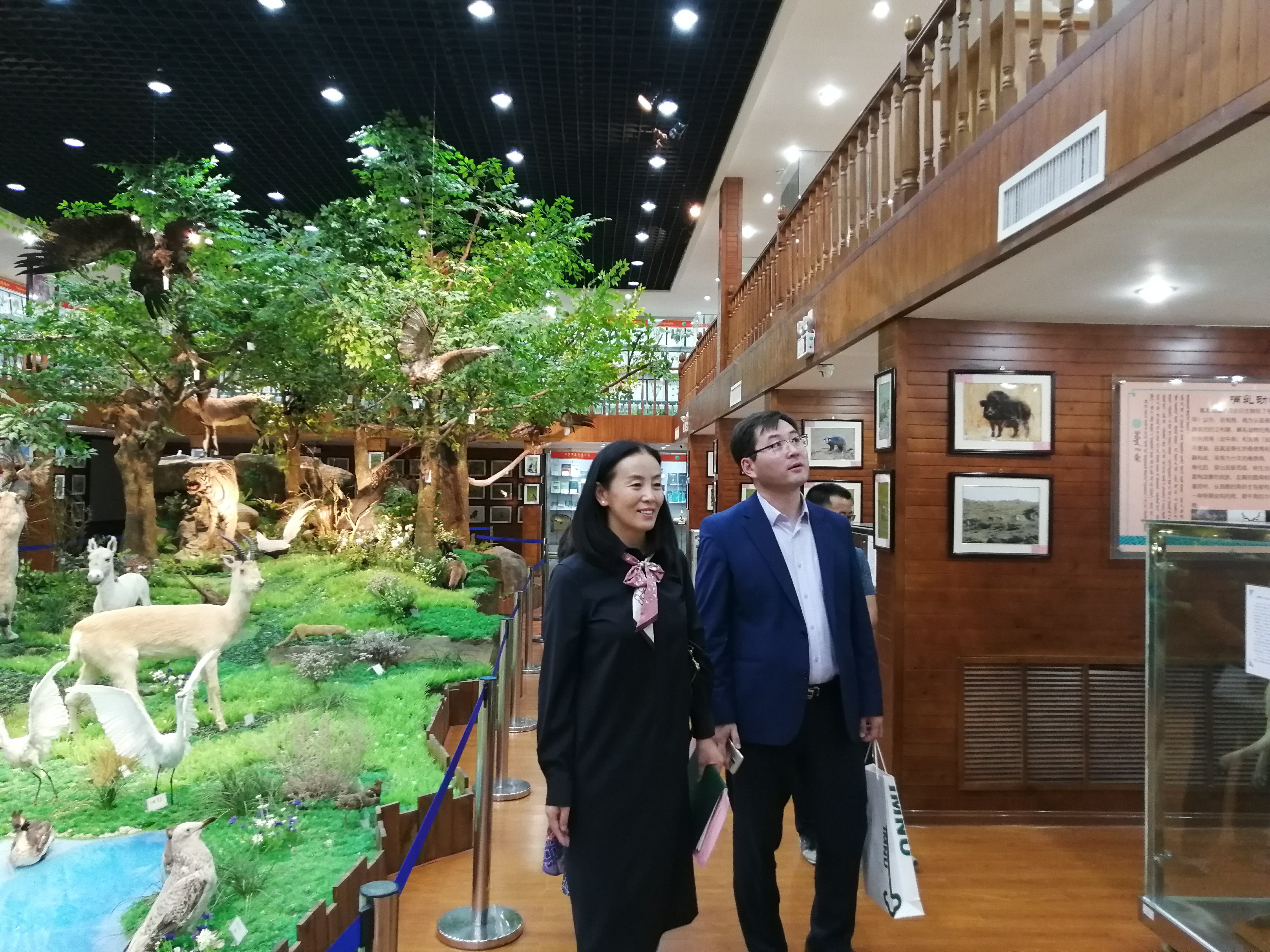 访谈结束后,乌-巴特尔朝格图院长在红雨院长和部分教师的陪同下参观了我校生物标本馆,乌-巴特尔朝格图院长对我校生物标本馆的建设和馆藏标本的规模大加赞赏。